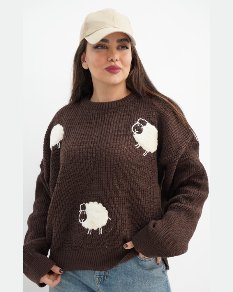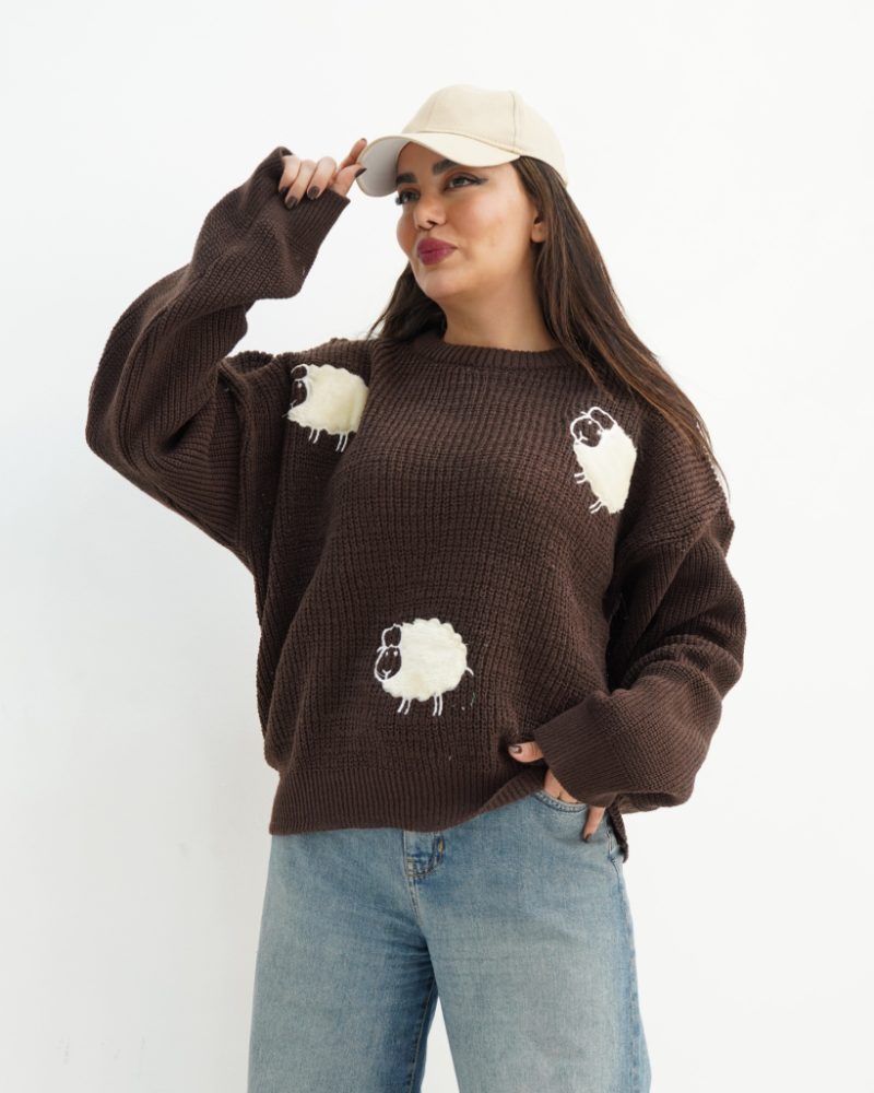 بلوز بافت زنانه لش گلدوزی ببعی جودان بافت یقه گرد آستین بلند کد 1896