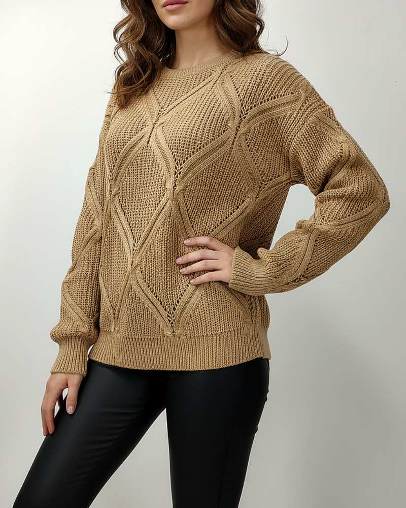 بلوز بافت زنانه آران بافی طرح لوزی های بزرگ یقه گرد آستین بلند جودان بافت کد 1898
