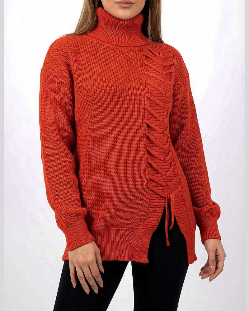 بلوز بافت زنانه یقه اسکی یک طرف گیس بافت آستین بلند کد 1940