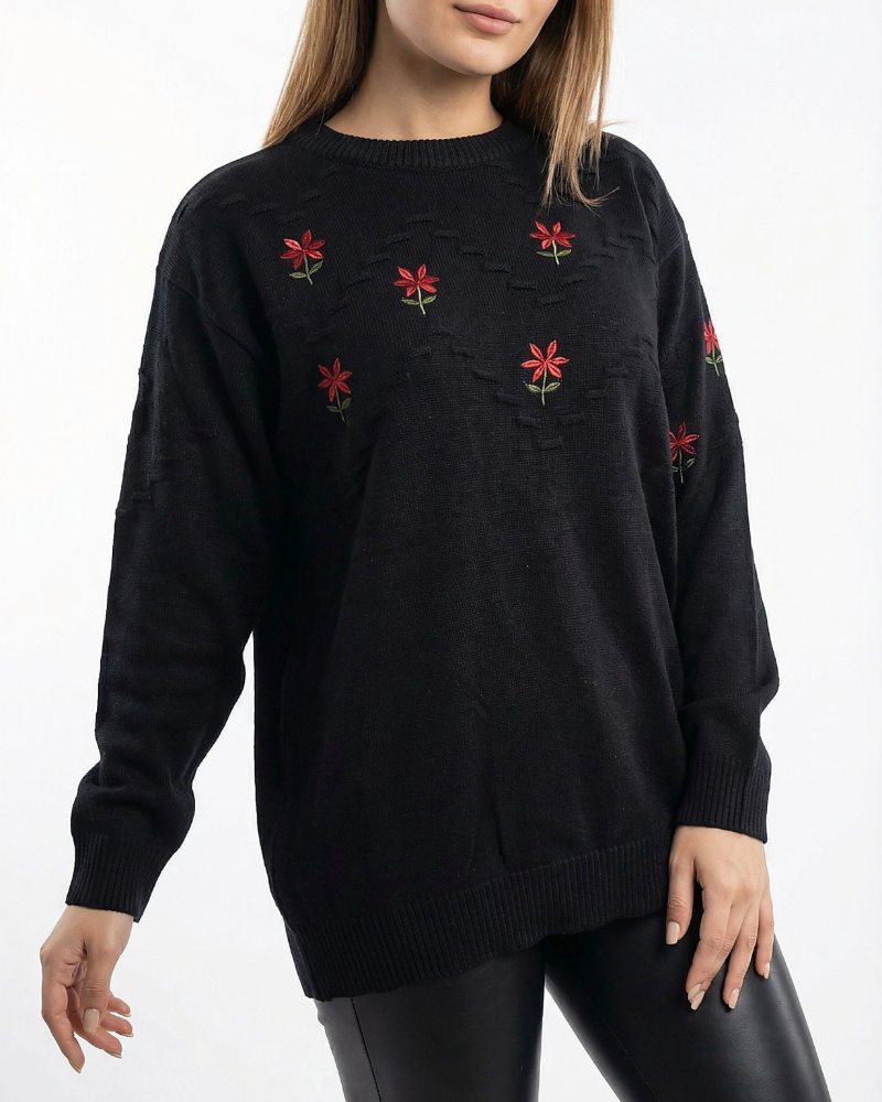 بلوز بافت زنانه گلدوزی گل شاخه ای یقه گرد آستین بلند ریز بافت کد 1939