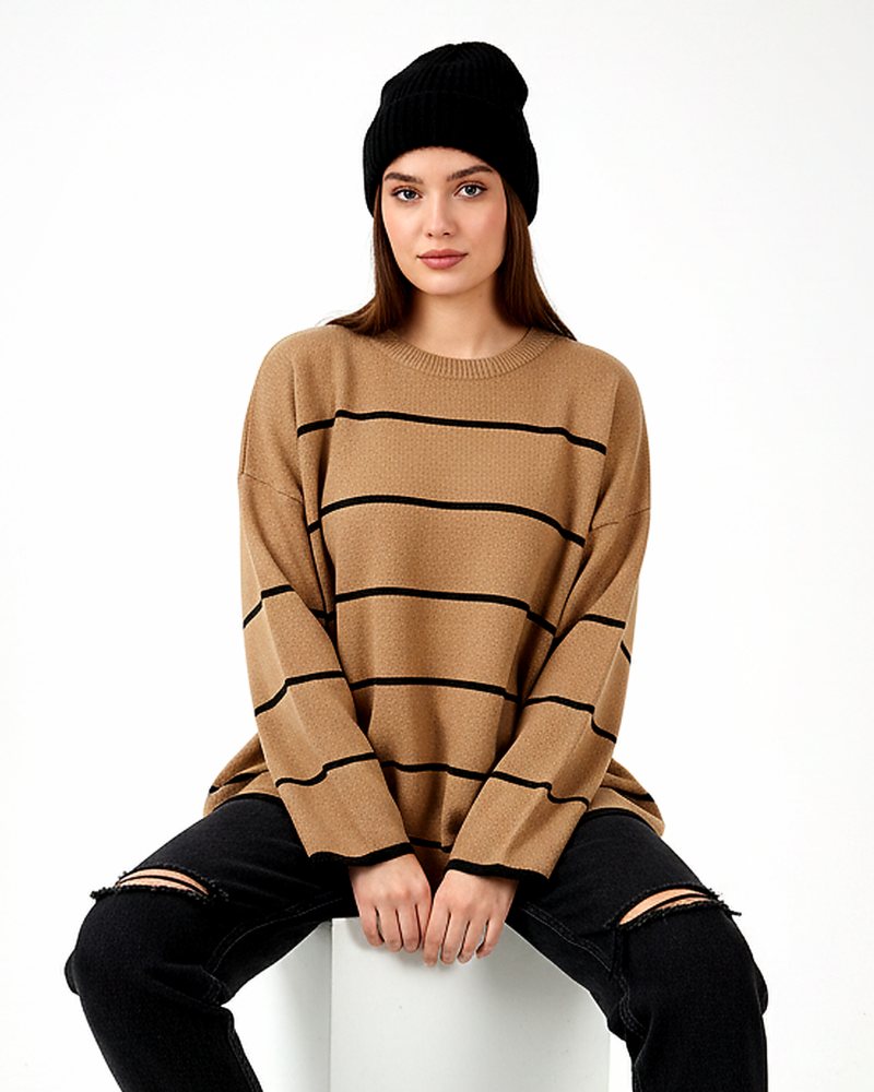 بلوز بافت زنانه پینترسی راه راه لش یقه گرد آستین بلند کد 1872