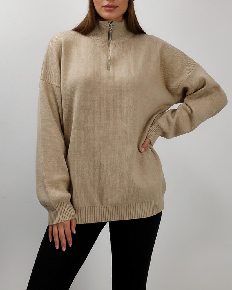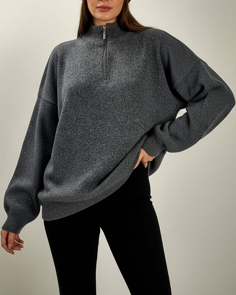 بلور بافت زنانه نیم زیپ یقه ایستاده لش آستین بلند ساده کد 1900
