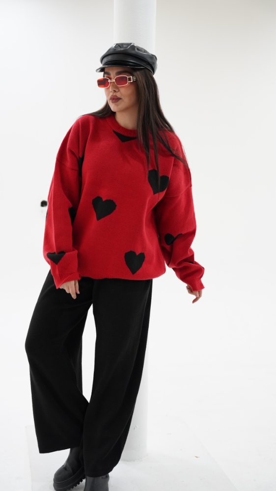ست بلوز شلوار بافت قلبی یقه گرد آستین بلند زنانه کد1781