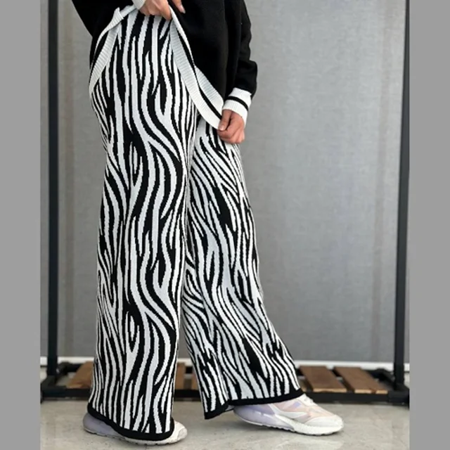 شلوار بافت زنانه نیم بگ طرح زبرا کمر کش ریز بافت کد 1892