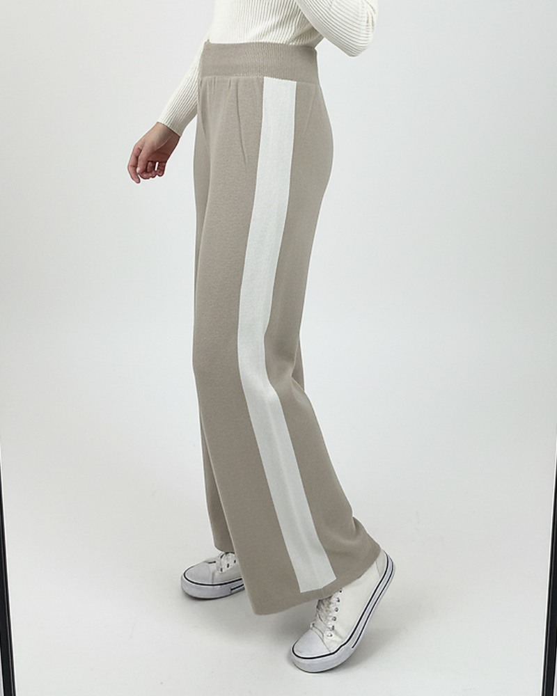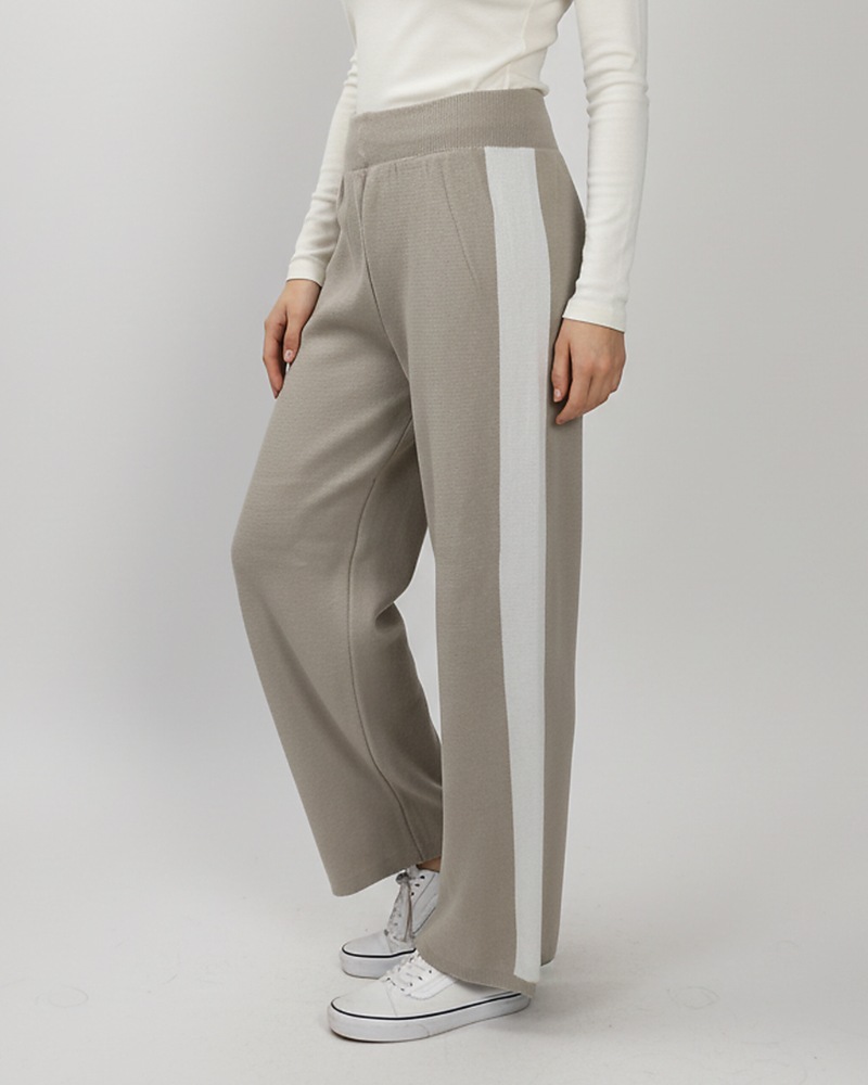 شلوار بافت زنانه بغل خط دار نیم بگ قد 100 کمر کش سفت بافت کد 1899