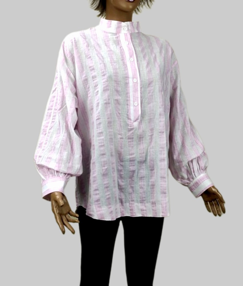 تونیک مانتویی جلو بسته یقه ایستاده پنج دکمه راه راه پایین حلالی مدل لش نخی زنانه کد1680